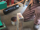Tuesday morning saw Michael softening some rivets he had made for Adiela's new cladding fasteners. This will hold it more securely and make it easier to fit, leaving the boiler bands as purely cosmetic items. Ryan found the time to paint the white rims on the wheels, finishing their repaint completely. Overnight, he had also done some more painting on the nameplates and the headlight.